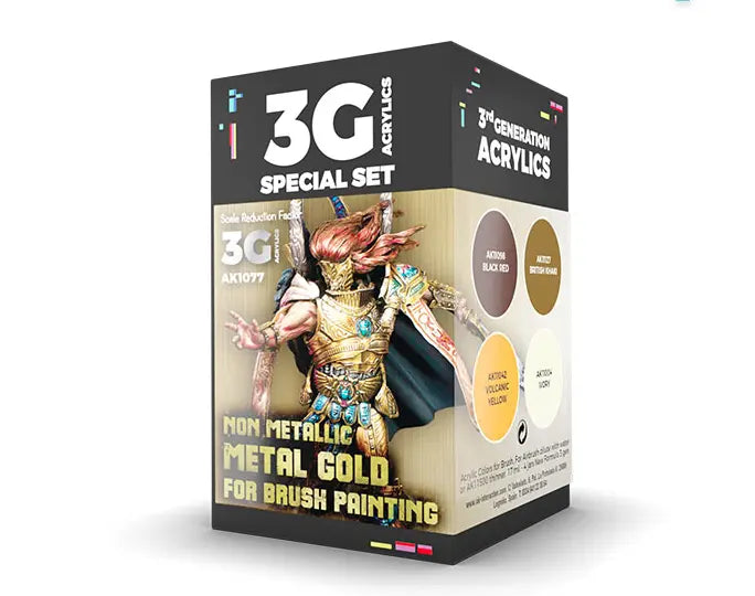 This Third Generation set contains a selection of colors to paint NMM gold effects on figures and accessories. It includes 4 tones to combine for applying the non metallic metal technique.