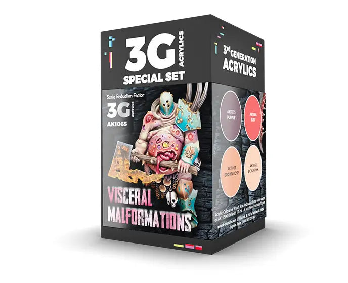 This Third Generation set contains a selection of colors to paint visceras and decomposed flesh with brush, using transitions, illuminations and glazing techniques on figures. It includes 4 tones to combine easily for making a realistic effect.