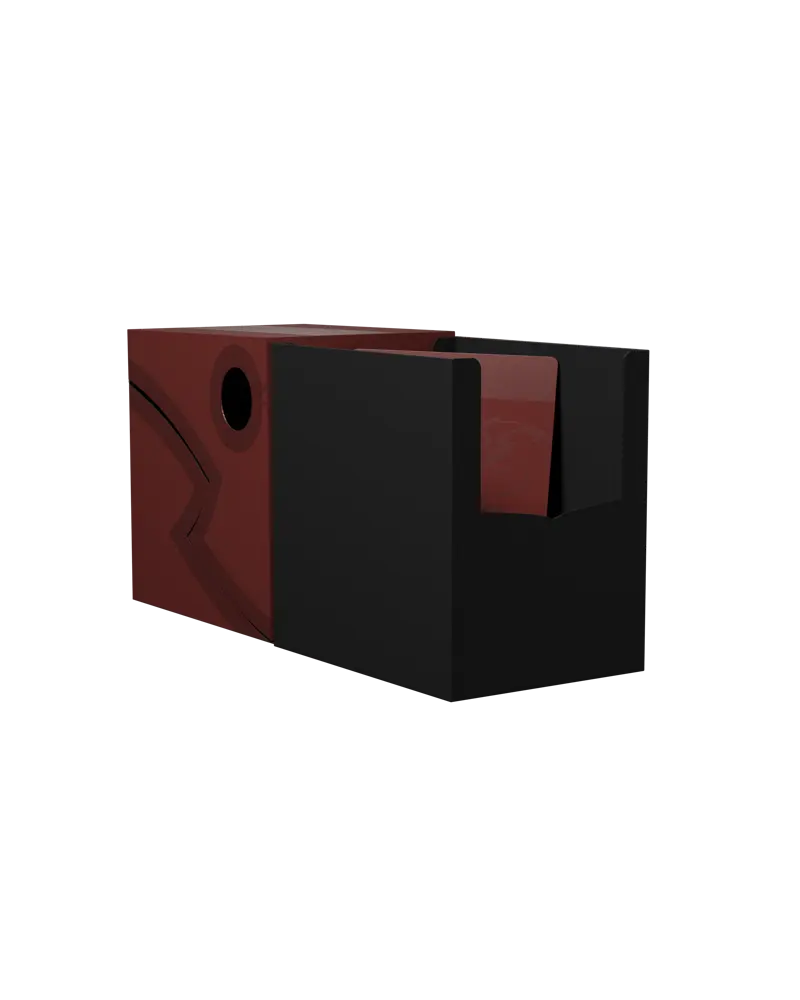 The perfect MTG commander deck box! The Dragon Shield Double Shell is a sturdy deck box with two layers of protection all the way around. The lid wraps around the box for a secure closure or can be set to stay open for easy access to cards. Cube Shells will fit inside. The Double Shell fits inside large Nest boxes and Magic Carpets. Each Double Shell has a writing field on top for personalization and comes with a divider.