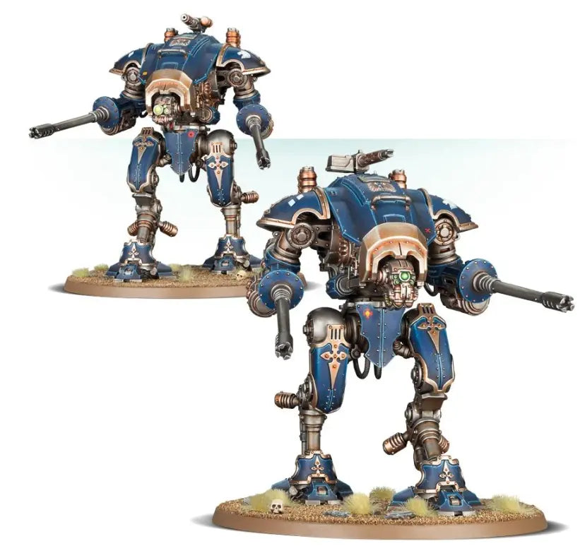 This kit comprises 148 plastic components, and is supplied with 2x Citadel 100mm Round Bases. Also included is an Armiger transfer sheet, featuring heraldry for Imperial Knights. These miniatures are unpainted and require assembly – we recommend using Citadel Plastic Glue and Citadel paints.