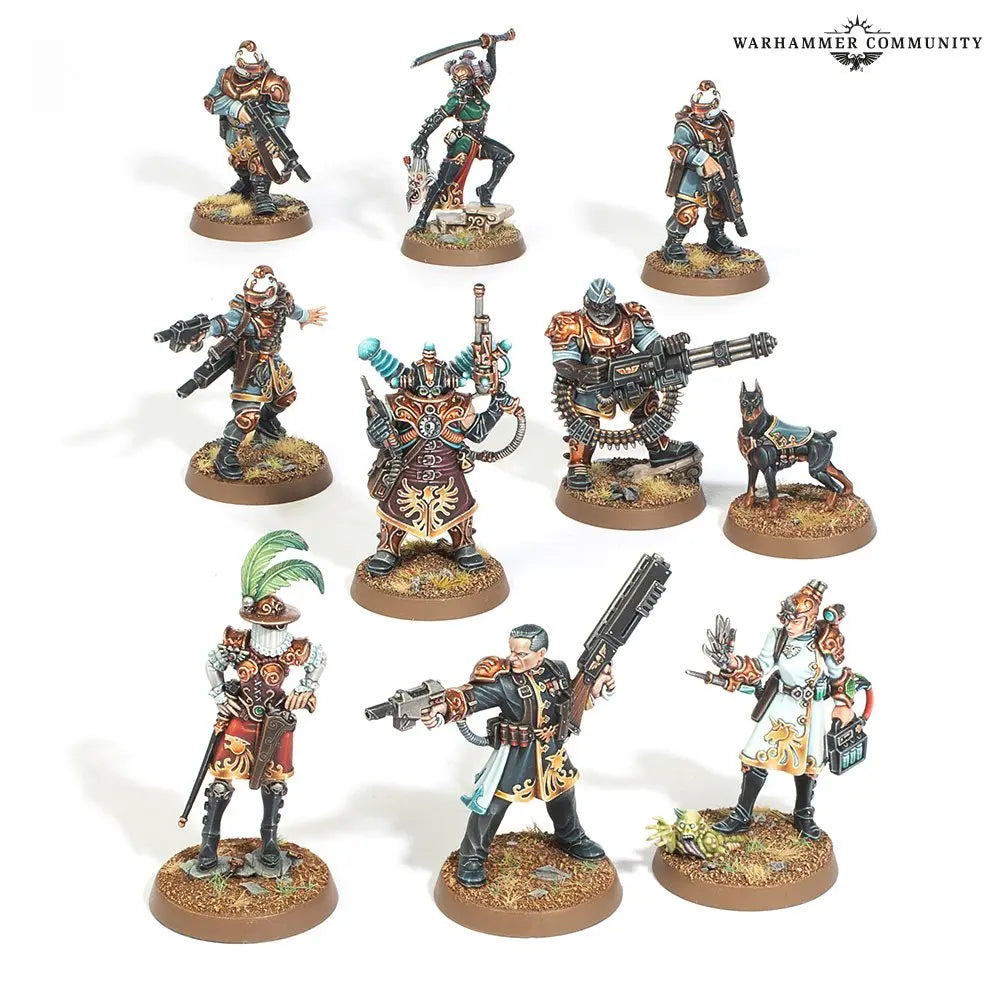 This multipart plastic kit allows you to build 10 Elucidian Starstriders, the handpicked retinue of a highborn Rogue Trader. These miniatures can be used as Elucidian Starstriders operatives in games of Kill Team, or fielded with Imperium armies in games of Warhammer 40,000. Every model in this stunning set is unique – it includes Elucia Vhane herself, along with her coterie of specialists – a Death Cult Executioner, Rejuvent Adept, and Lectro-Maester – as well as a squad of five gun-toting Voidsmen and a faithful ship's Canid.