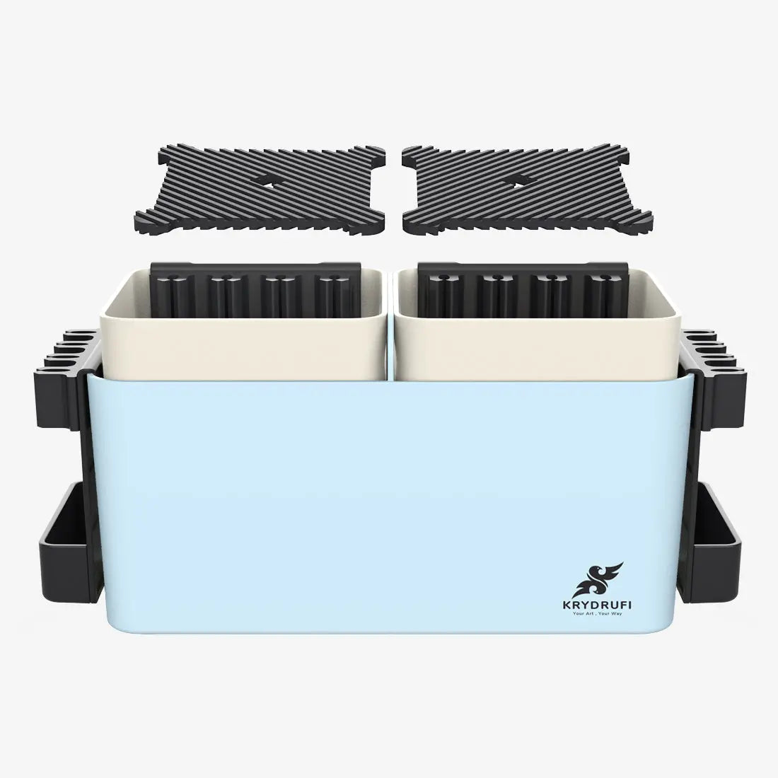 - Save Your Money – This paint station includes everything needed for art and miniature painting.Features detachable paint brush cleaner rinse cup,paint brush holders, silicone cleaning insert, wet palette with lid, palette paper and paint storage.