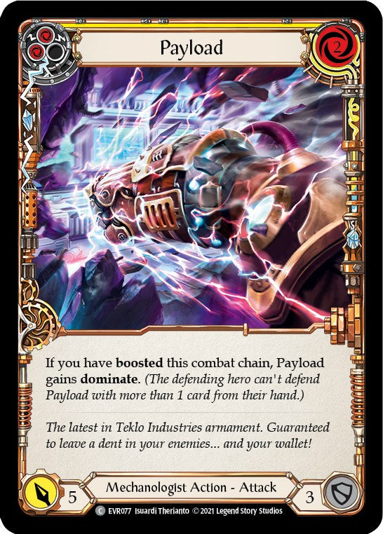 If you have boosted this combat chain, Payload gains dominate. (The defending hero can't defend Payload with more than 1 card from their hand.)
