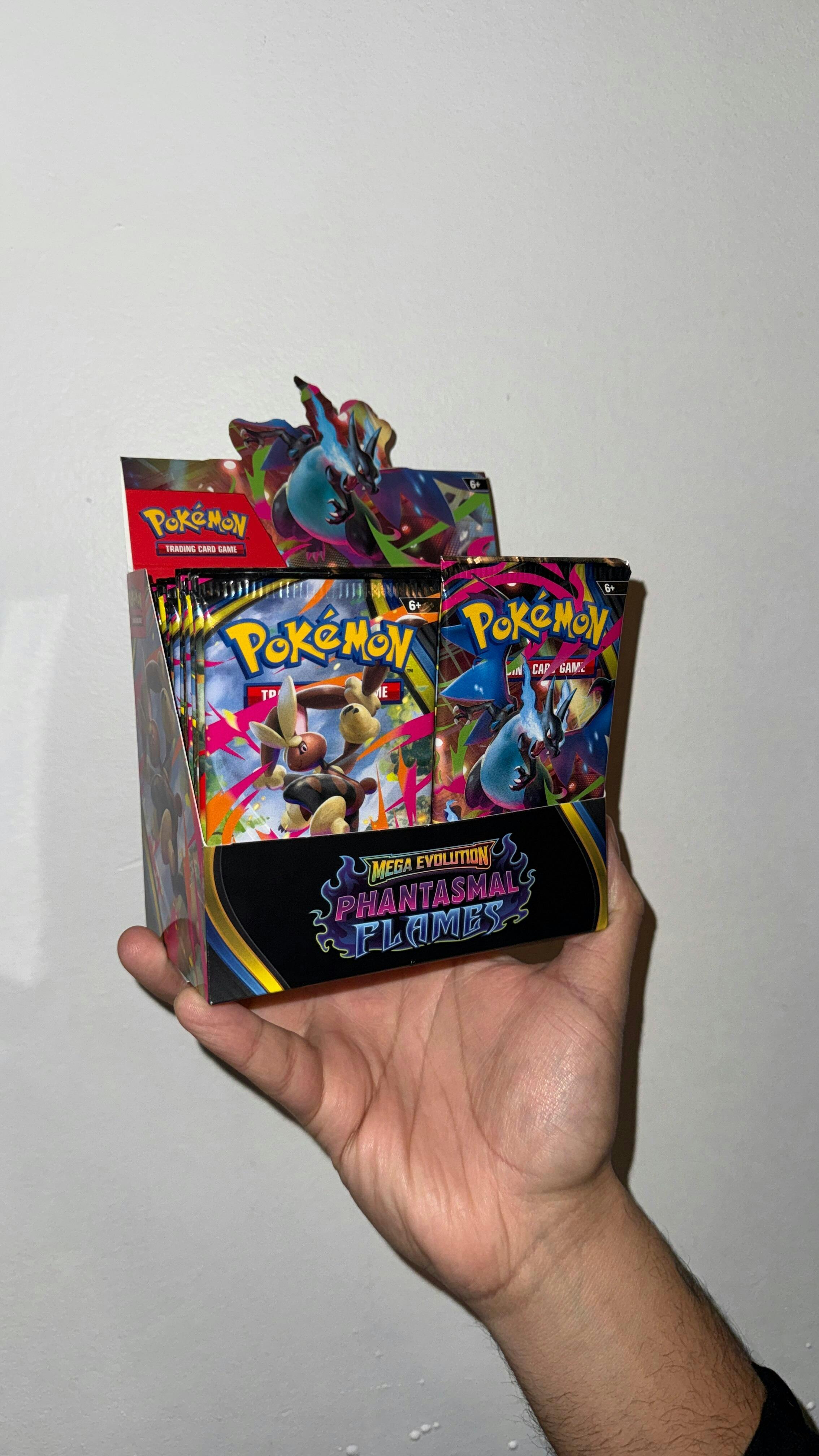 Searing blue flames rip across a dark battlefield as Mega Charizard X ex soars up and looks down upon its opponents! With a deep chill to rival the heat, the shadowy figure of Mega Gengar ex slowly rises into view, and both Pokémon prepare to attack. Determined to prove their mettle, Mega Heracross ex, Mega Lopunny ex, and even more Pokémon line up to give it their all in the Pokémon TCG: Mega Evolution— Phantasmal Flames expansion!