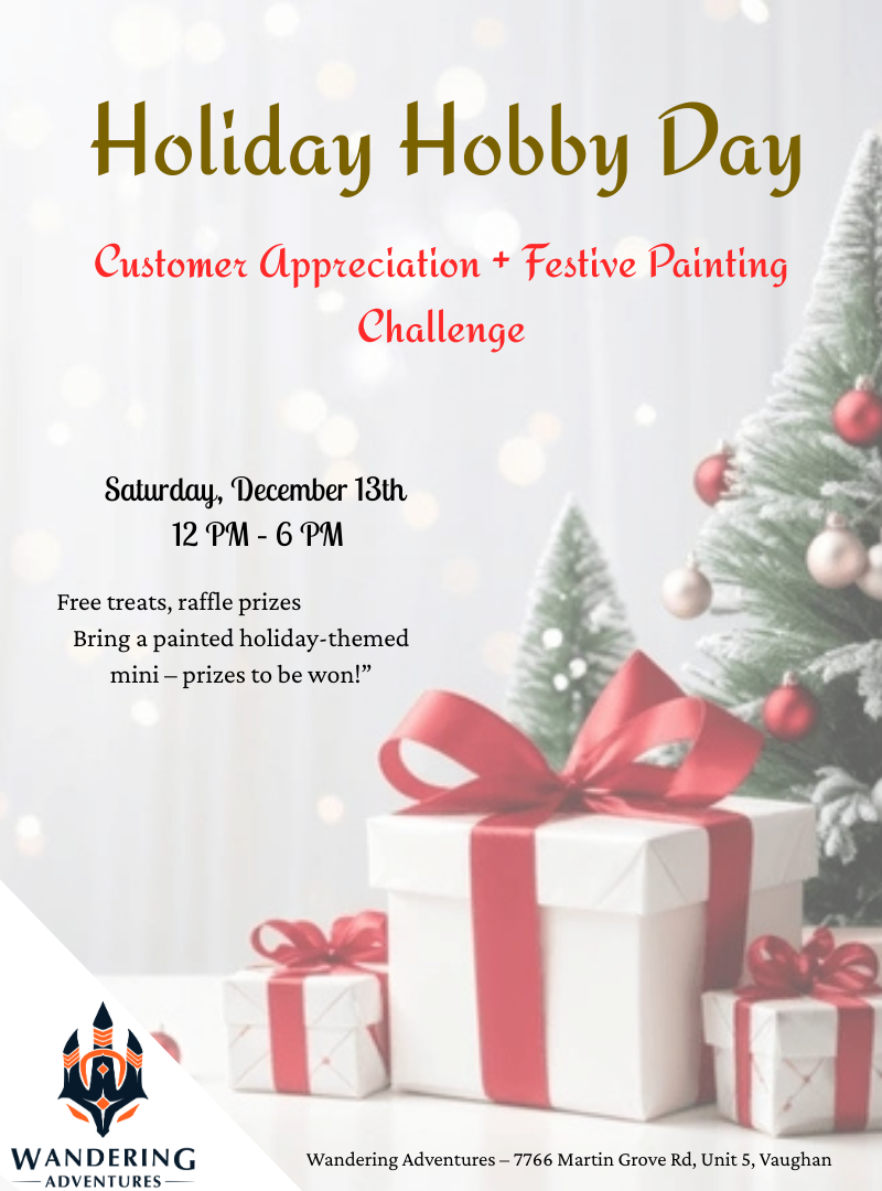 Celebrate the holidays with us at Wandering Adventures! We’re combining a Festive Painting Challenge with a Customer Appreciation Day to close out the year in style.